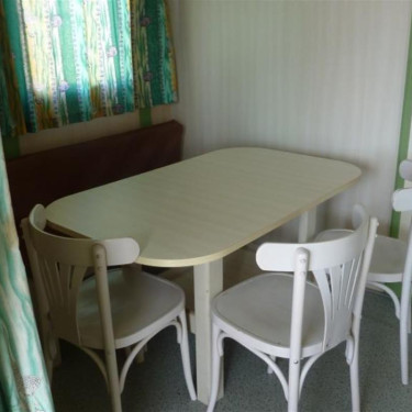 Table et chaises, banquette, TV, chauffage