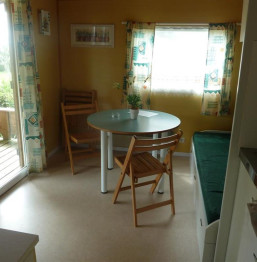 Table et chaises, banquette convertible (couchage de 80 cm), TV, chauffage