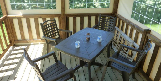 Terrasse couverte avec joues de côté comprenant un salon de jardin